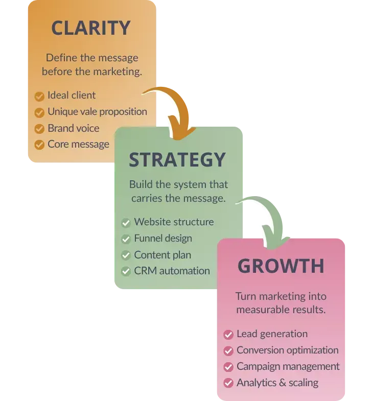Clarity equals revenue! Brand clarity is the foundation to effective marketing. Through our discovery process, we identify the unique factors of your products, service, and the experience of doing business with your company. We pull it all together into a brand image that becomes identifiable through design and messaging.
